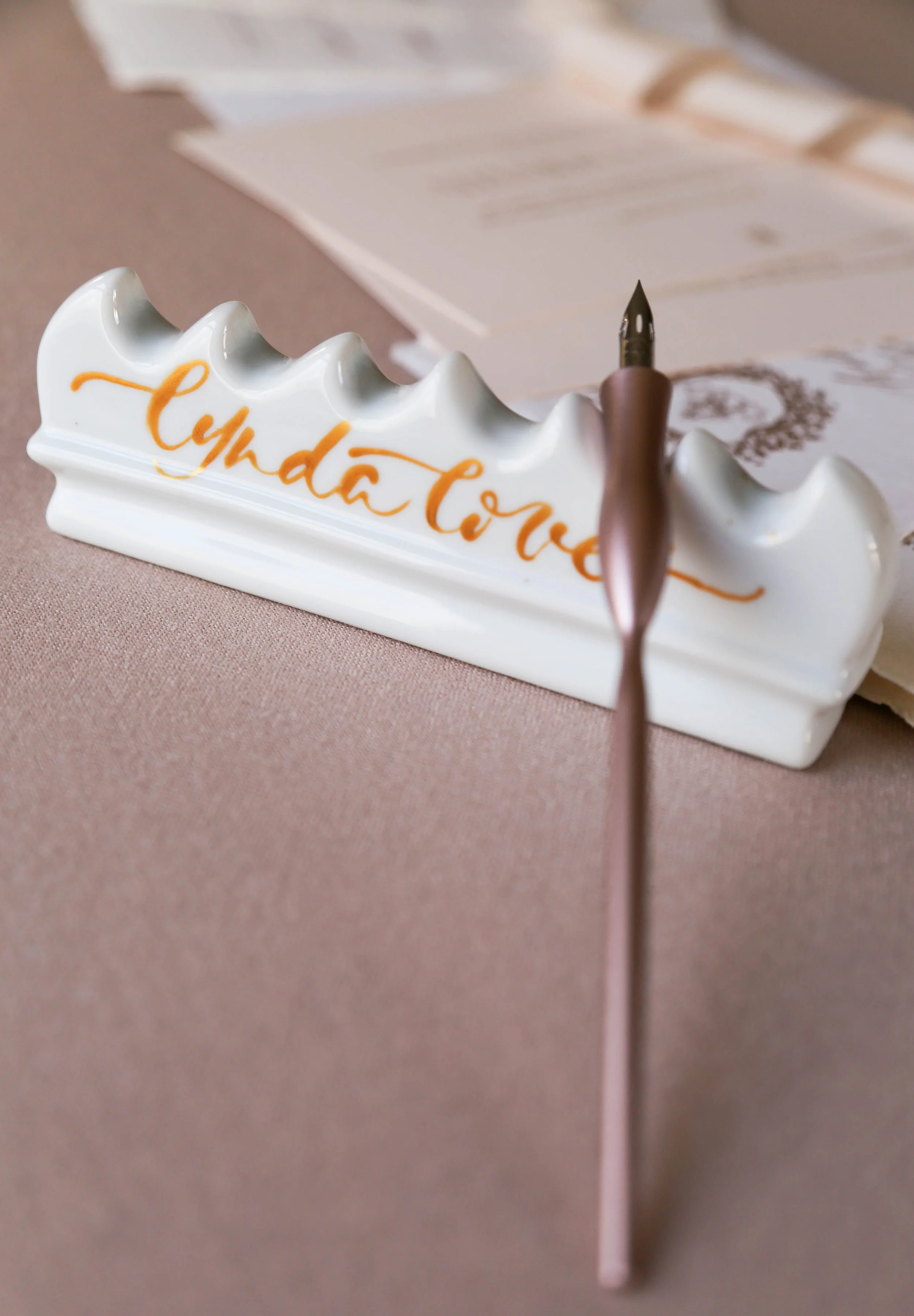 Once I’ve received your stationery from the printer, it is hand finished and assembled by me in the studio. This could involve making up your suite with thread, vellum wraps and wax seals, or addressing guest envelopes by hand with calligraphy if you’ve opted for this service. It will all be carefully packed and sent to you via a guaranteed next day delivery service, which will be booked with you in advance as it will require a signature. All you then need to do is take your save the dates or invitations to the Post Office and pop a stamp on! For international orders, your stationery is sent via a tracked and insured courier.
